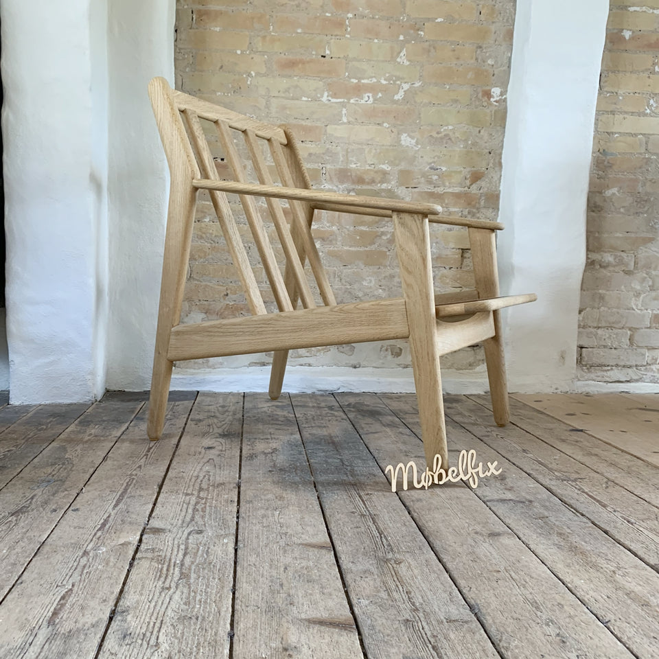 I forbindelse med køb af hyndesæt hos Møbelfix kan vi tilbyde at afslibe og enten sæbe- eller olienbehandle dine Poul Volther J55 lænestole. Prisen er angivet nedenfor.